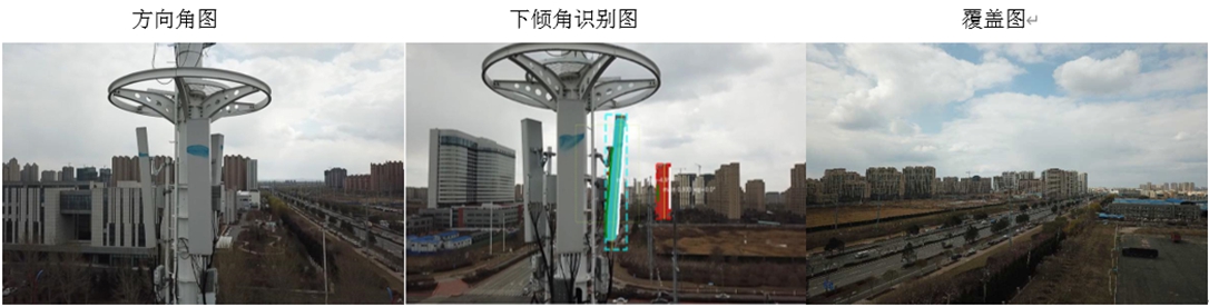 无人机在飞行拍摄过程中,根据无人机拍摄图像,智能识别天线方向角、下倾角等工参,同时在APP端及服务器存储拍摄图像及勘测数据。